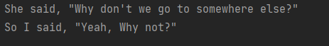 System.out.println("She said, \"Why don't we go to somewhere else?\"\n" +