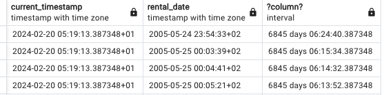 CURRENT_TIMESTAMP - rental_date