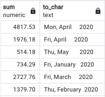 GROUP BY TO_CHAR(payment_date, 'Dy, Month YYYY')