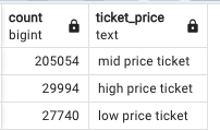 WHEN total_amount < 150000 THEN 'mid price ticket'
