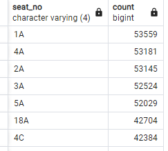 1. Write a query to find out which seats are the most popular - try to find out which seat has been chosen most frequently.